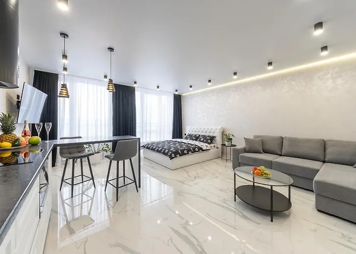 Featuring views of the city, the 40 m² Лучшие Апартаменты На 2 Этаже В Жк Seven is located a mere 7 minutes' walk from House with Cats. Wi-Fi and parking are also available at this 1-bedroom apartment.
